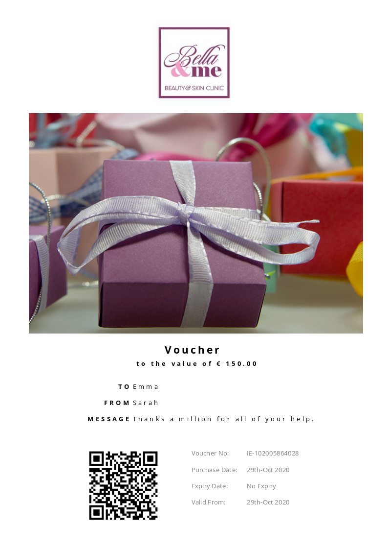 Bella & Me Beauty & Skin Clinic allows you to purchase instantly printable gift vouchers, special offers and tickets using the Voucher Connect platform.